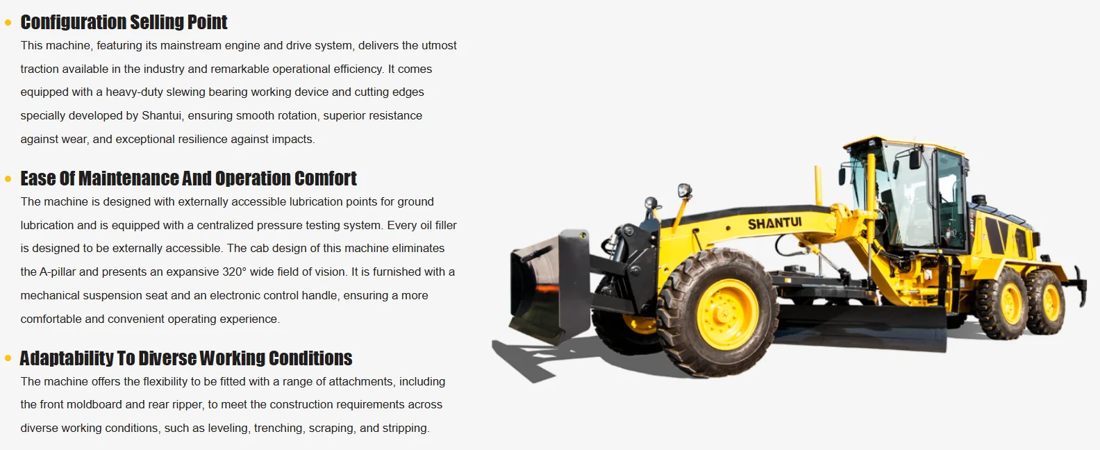The machine is equipped with a high-power six-cylinder engine, globally renowned brand hydraulic components, and an electronic control positive-flow hydraulic system, ensuring reliable performance.